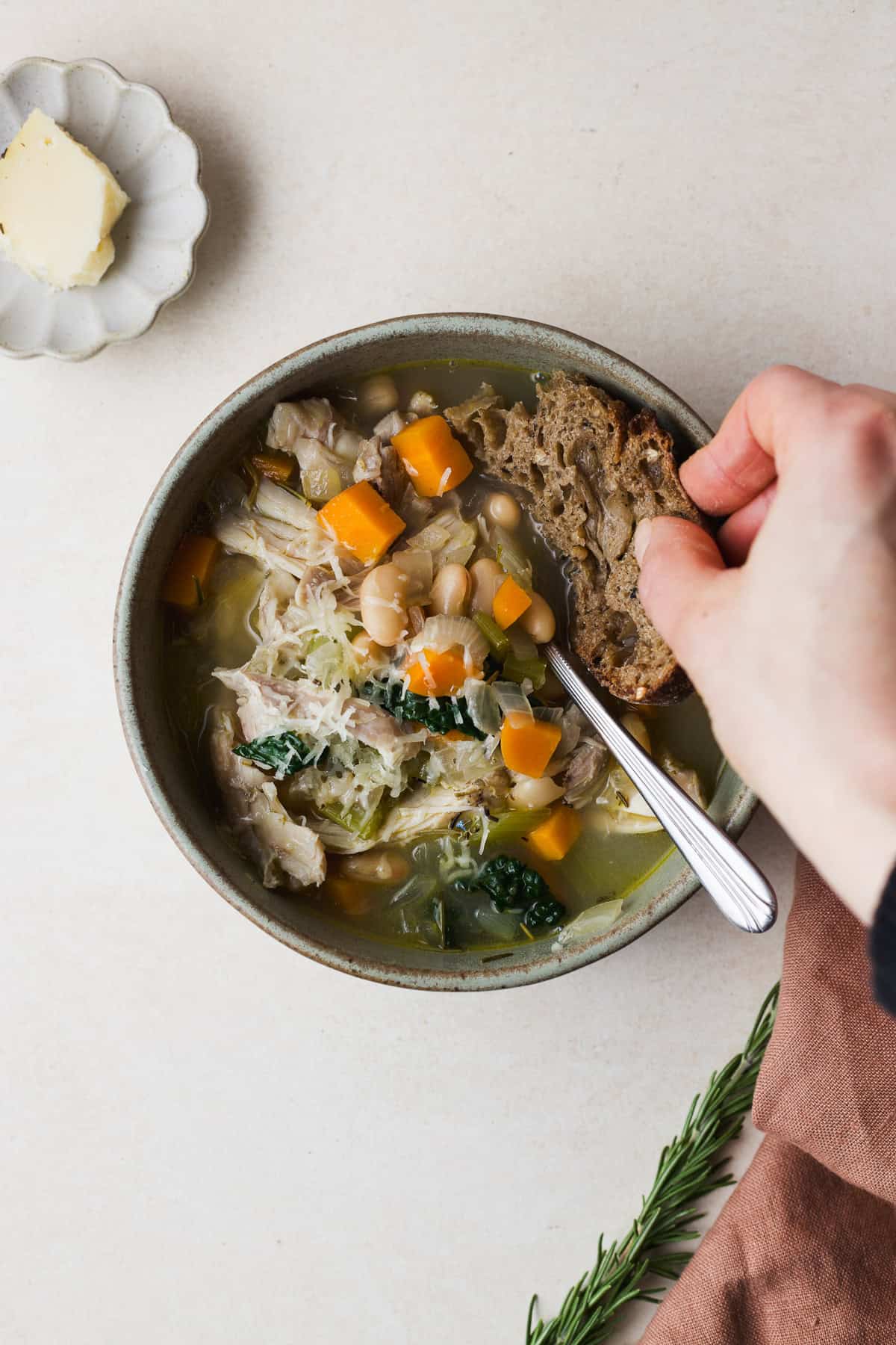 This rosemary chicken soup with white beans is one I've had simmering on the stove a on repeat this winter, because it hits all the right notes with warmth and comfort.